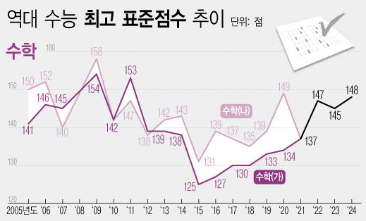 이는 불수능이었다는 것을 증명할 수 있으며 수학은 표준점수 최고점이 148점으로 지난해(145점) 보다 3점이 올랐습니다.